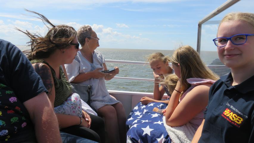 Die Crew der „Ol Büsum“ ist wunderbar und unterstützt uns sehr, wir dürfen als Erste und in aller Ruhe einsteigen. Gabi möchte direkt an der Reeling sitzen, wo ihr der Wind um die Nase pustet. Ich glaube, die Seehundbänke und die Tiere, die wir dort sehen, sind für sie fast nebensächlich, ihr Blick geht in die Ferne. Die kleineren Kinder sitzen ihr gegenüber, eingekuschelt in die Wünschewagen-Decke, die wir mitgebracht haben. Es gibt feste Umarmungen und Tränen, nicht bei Gabi, die total bei sich ist, sondern ihren Angehörigen, die fühlen, dass diese gemeinsame Zeit bald enden wird.